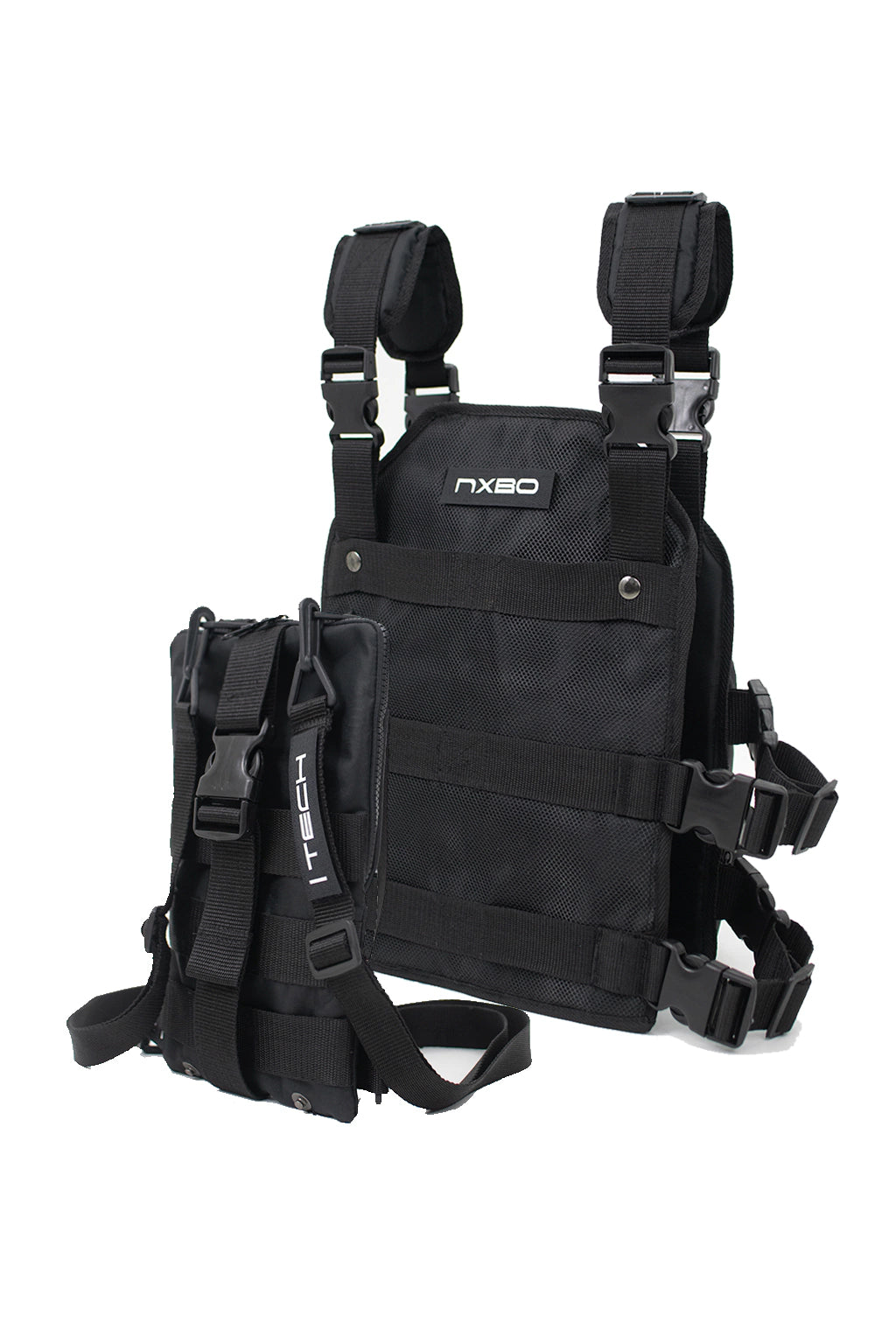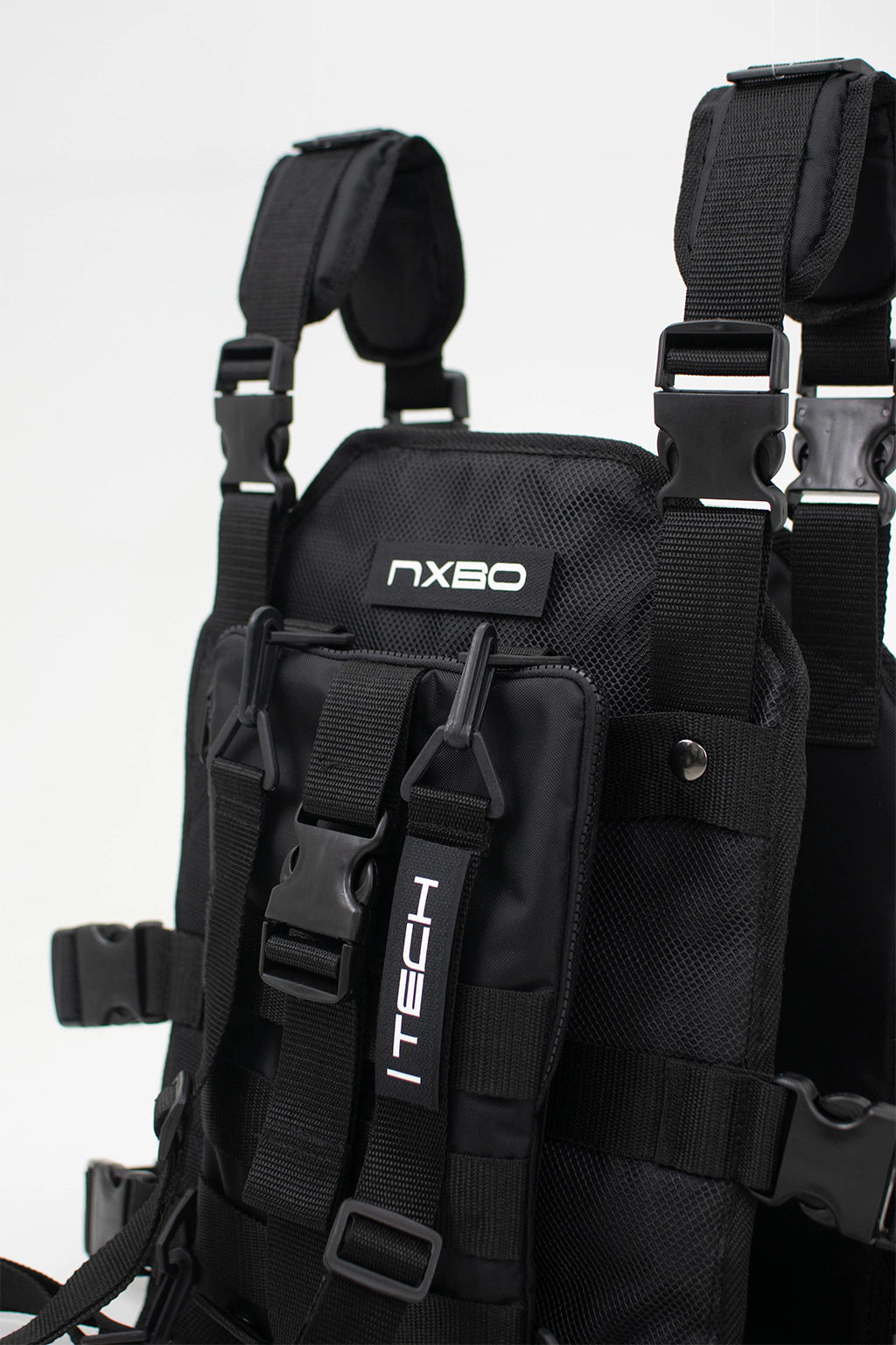 Incluye correas ajustables en la mochila desmontable y un sistema de regulación tanto en el largo como en el ancho, permitiendo un calce cómodo para cualquier tipo de cuerpo. Además, viene con parches intercambiables [Large NXBO], [Small NXBO] y [Small TECH], junto con correas, velcro, hebillas y malla de alta calidad, fusionando a la perfección la estética táctica con una funcionalidad superior.