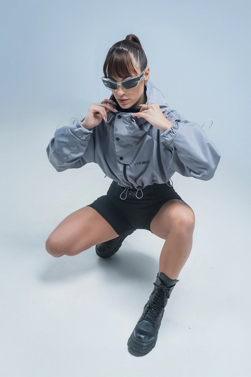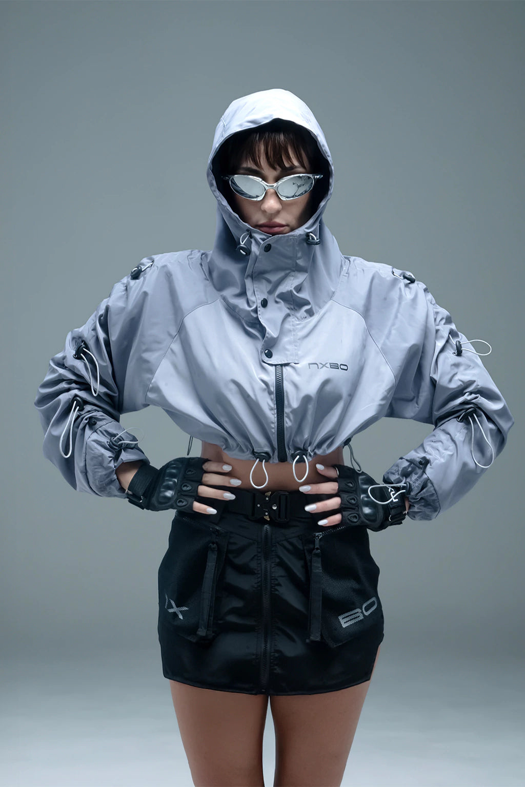 The Connection Crop is a high-visual-impact technical jacket, designed to function as "light armor" within the NXBO ecosystem. Constructed in waterproof technical nylon, it incorporates a complete system of elastic adjustments and tensioners that allow you to manipulate volume in the sleeves, waist, and hood to adapt to the weather, movement, and personal style.