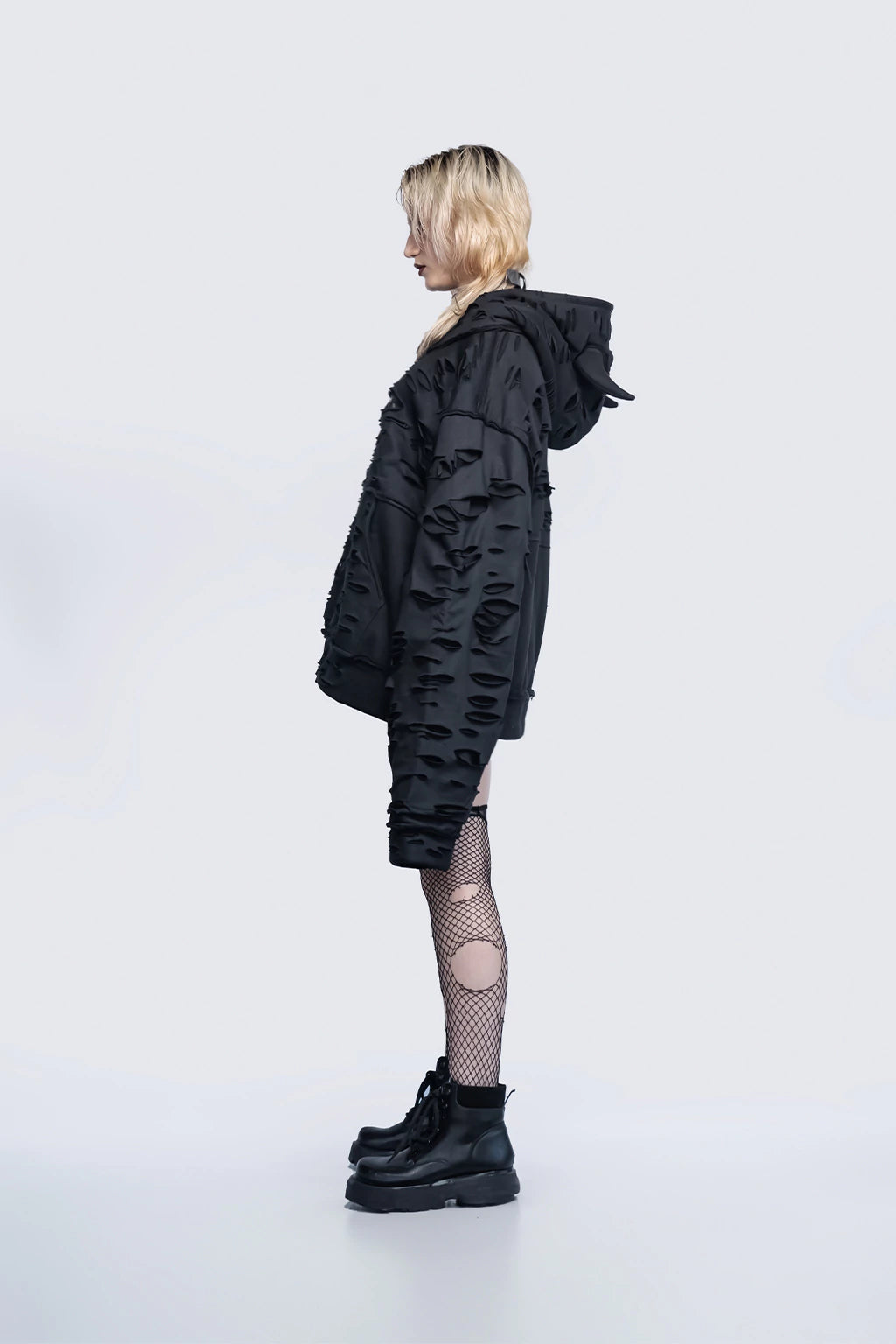 Descubrí esta prenda de diseño vanguardista, ideal para quienes buscan fusionar el estilo urbano con la estética postindustrial. Confeccionada con una combinación premium de algodón con interior polar invisible y jersey en capas, ofrece una textura única y una sensación suave y confortable. Su corte oversized presenta proporciones equilibradas en largo y ancho, garantizando una silueta favorecedora para todo tipo de cuerpo.