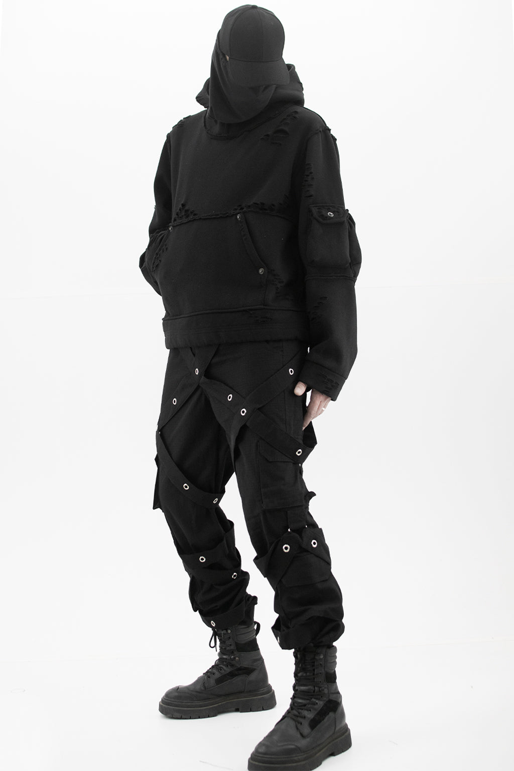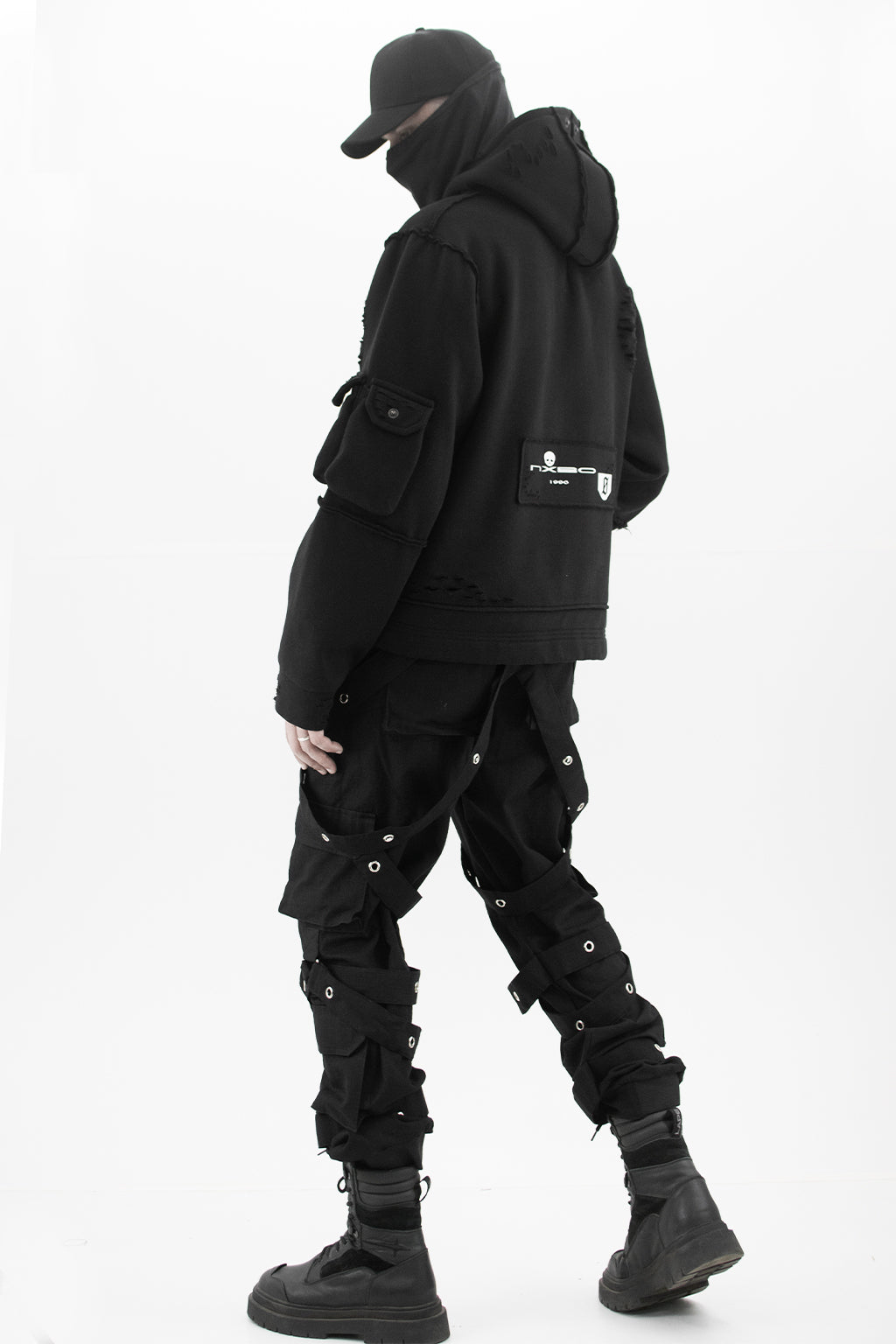 Confeccionado en tela impermeable con forro interior de polar, este modelo ofrece protección tanto contra el frío como contra la lluvia. Presenta costuras y cortes de panel detallados en toda su estructura, junto con dos amplios bolsillos cargo impermeables con cierres ocultos para mayor seguridad. Los logos NX en negro sobre negro aportan un toque elegante y minimalista. La cintura elástica con cierre a presión y cremallera, combinada con un sistema de correas ajustables, brinda confort y estabilidad. Un sistema de apertura en los tobillos permite usarlo con un calce más ajustado o suelto. Dos bolsillos traseros tipo ojal, forrados en microfibra, completan una confección funcional y de calidad premium.