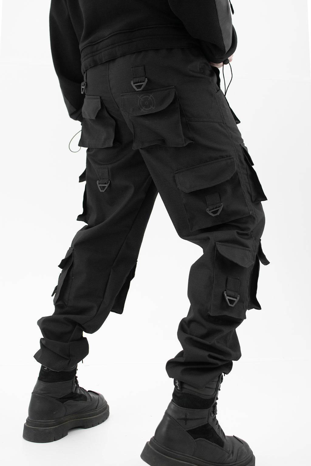 Este pantalón está confeccionado en tela ripstop antidesgarro, combinando resistencia y durabilidad con una estética moderna. Presenta dos bolsillos laterales clásicos, cinco bolsillos cargo pequeños (17 x 10 cm) y seis bolsillos cargo grandes (15 x 16 cm), ofreciendo una amplia capacidad de almacenamiento. La cintura elástica garantiza un calce cómodo y adaptable, mientras que la bragueta con cierre aporta practicidad. Los puños con terminación deshilachada añaden un detalle urbano y distintivo al diseño.